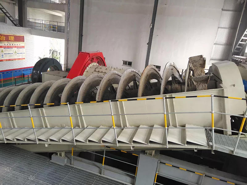 Занурений спіральний класифікатор - це пристрій класифікації, який використовує принцип, що тверді частинки різних розмірів та питомої ваги мають різну швидкість осідання в рідинах. Частинки тонкої руди плавають у воді і переповнення, а груба частинки руди опускається на дно резервуару і виштовхуються до верхньої частини спіралі для розряду. Спіраль обертається з низькою швидкістю, помішуючи суспензію, щоб дрібні частинки суспендували на поверхні і переповнюватись на переливному папері, тоді як грубі частинки опускаються на дно резервуара і транспортуються до порту розряду спіральною для розряду як повернення піску.